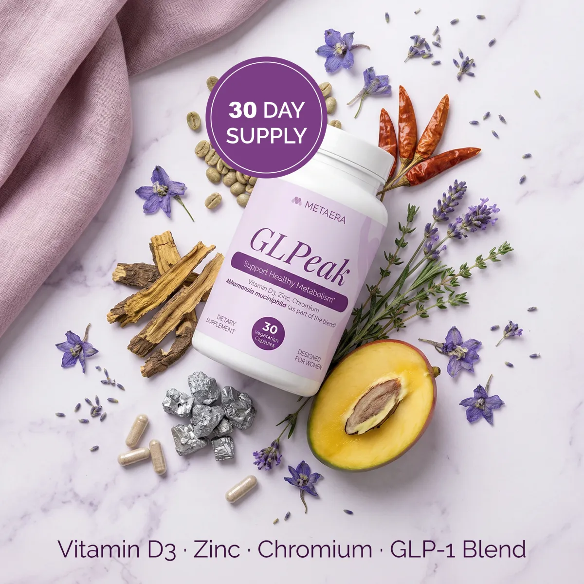 - Vitamin D3: Helps support healthy metabolic function, maintain insulin sensitivity, and plays a role in appetite balance and overall wellness.
